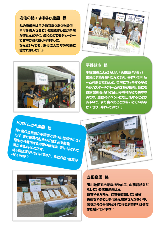 ※天候等により出店内容やイベントの日程が変更する場合があります。 予めご了承下さい。